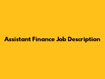 Assistant Finance Job Description: Key Responsibilities