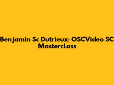 Benjamin Sc Dutrieux: OSCVideo SC Masterclass
