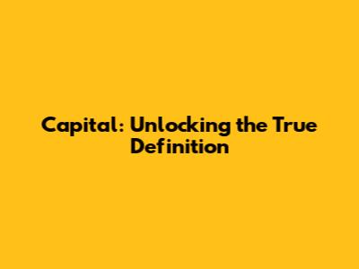 Capital: Unlocking The True Definition