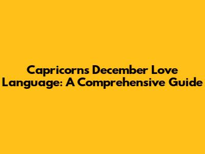 Capricorn's December Love Language: A Comprehensive Guide