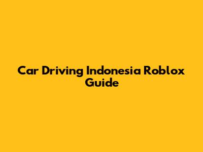Car Driving Indonesia Roblox Guide