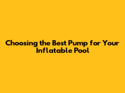 Choosing The Best Pump For Your Inflatable Pool