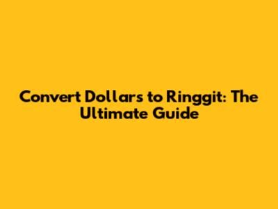Convert Dollars To Ringgit: The Ultimate Guide