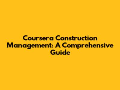 Coursera Construction Management: A Comprehensive Guide