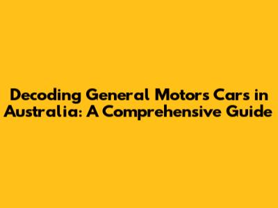 Decoding General Motors Cars In Australia: A Comprehensive Guide