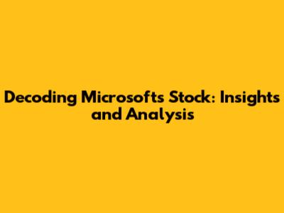 Decoding Microsoft's Stock: Insights And Analysis