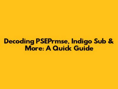 Decoding PSEPrmse, Indigo Sub & More: A Quick Guide