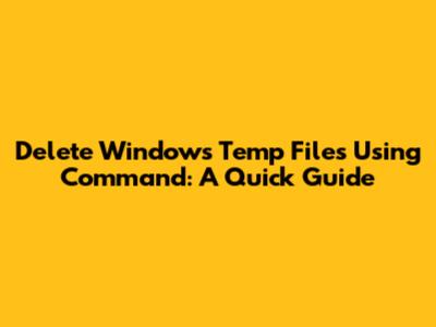 Delete Windows Temp Files Using Command: A Quick Guide
