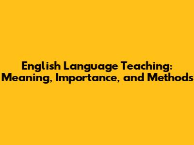 English Language Teaching: Meaning, Importance, And Methods