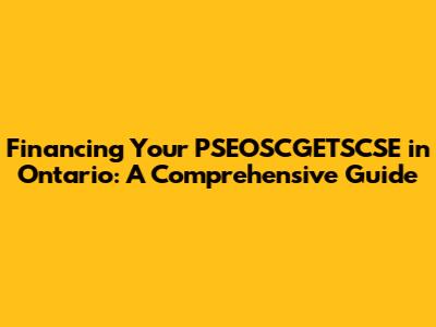 Financing Your PSEOSCGETSCSE In Ontario: A Comprehensive Guide
