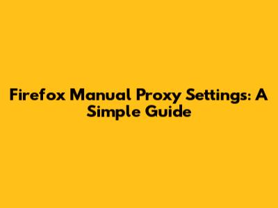 Firefox Manual Proxy Settings: A Simple Guide