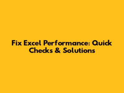 Fix Excel Performance: Quick Checks & Solutions