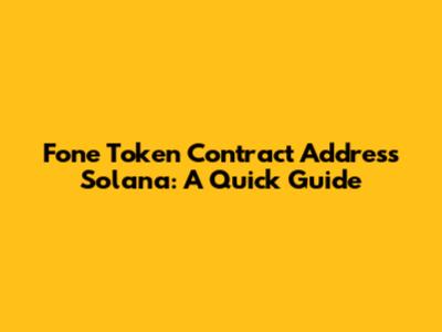 Fone Token Contract Address Solana: A Quick Guide