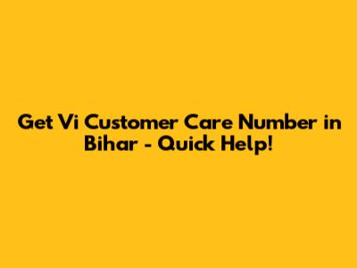 Get Vi Customer Care Number In Bihar - Quick Help!