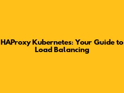 HAProxy Kubernetes: Your Guide To Load Balancing