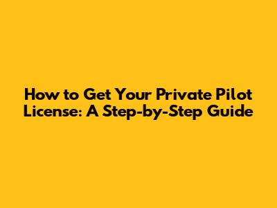 How To Get Your Private Pilot License: A Step-by-Step Guide