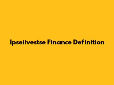 Ipseiivestse Finance: A Simple Definition