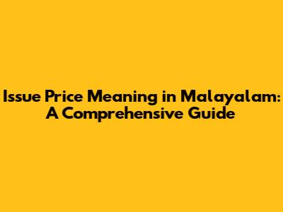 Issue Price In Malayalam: Decoding The Term