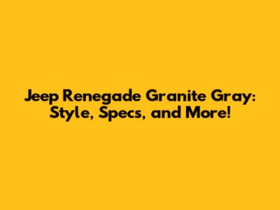 Jeep Renegade Granite Gray: Style, Specs, And More!