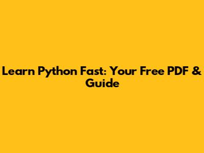 Learn Python Fast: Your Free PDF & Guide
