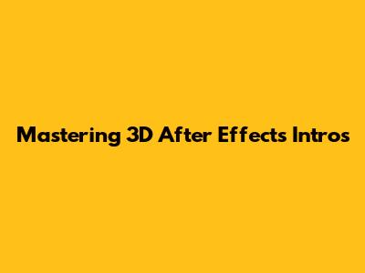 Mastering 3D After Effects Intros