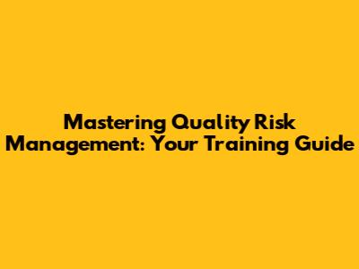 Mastering Quality Risk Management: Your Training Guide