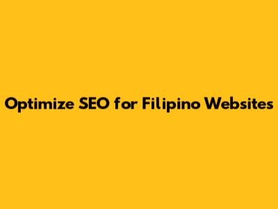 Optimize SEO For Filipino Websites