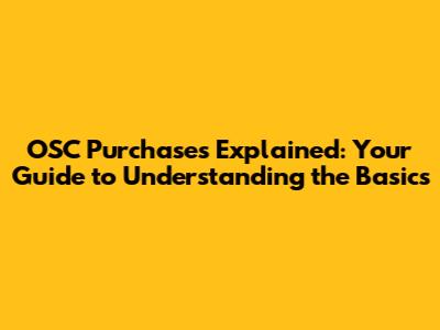 OSC Purchases Explained: Your Guide To Understanding The Basics
