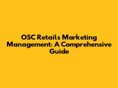 OSC Retail's Marketing Management: A Comprehensive Guide