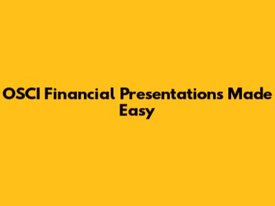 OSCI Financial Presentations Made Easy