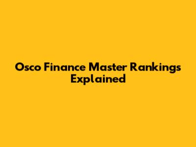 Osco Finance Master Rankings Explained