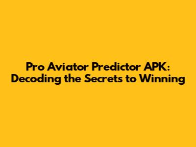 Pro Aviator Predictor APK: Decoding the Secrets to Winning