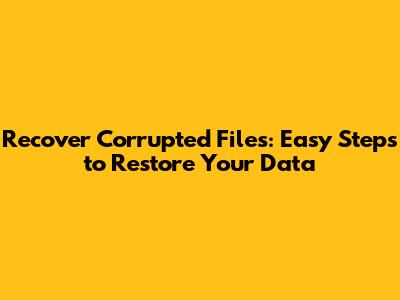 Recover Corrupted Files: Easy Steps To Restore Your Data