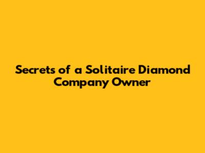 Secrets Of A Solitaire Diamond Company Owner