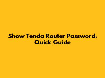 Show Tenda Router Password: Quick Guide