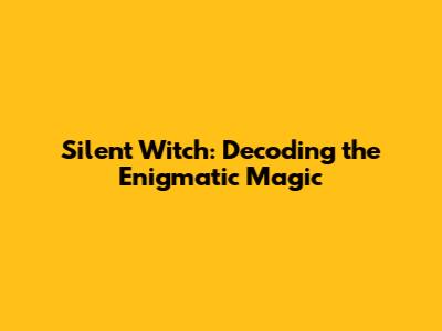 Silent Witch: Decoding The Enigmatic Magic