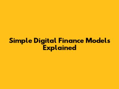 Simple Digital Finance Models Explained