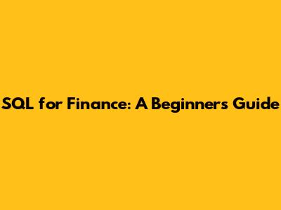SQL For Finance: A Beginner's Guide