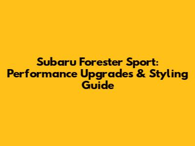 Subaru Forester Sport: Performance Upgrades & Styling Guide