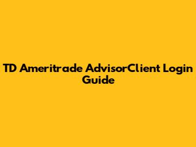 TD Ameritrade AdvisorClient Login Guide