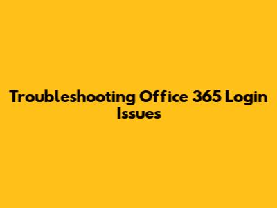 Troubleshooting Office 365 Login Issues