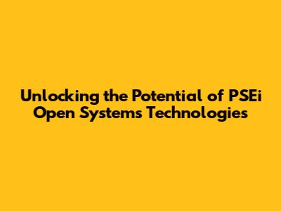 Unlocking The Potential Of PSEi Open Systems Technologies