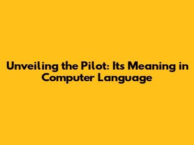 Unveiling The Pilot: Its Meaning In Computer Language