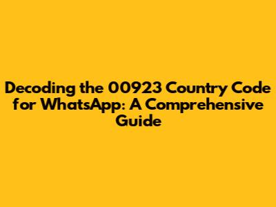Hey guys! Ever stumbled upon a WhatsApp number with the mysterious +923 prefix and wondered, "What's the deal with that?" Well, you're in the right place! This guide is all about demystifying the 00923 country code – often written as +923 – specifically in the context of WhatsApp. We'll dive deep into what it means, why it matters, and how you can use it to connect with people. So, grab your virtual coffee and let's get started on unlocking this digital puzzle. Understanding these codes is essential in today's globalized world, especially if you're trying to reach out to friends, family, or even business contacts abroad. It's like having a secret handshake into a specific part of the world, and knowing how to use it can open up a world of communication opportunities. The 00923 country code is more than just a string of numbers. It’s a key, a gateway to a vibrant community, and a testament to the power of global connectivity. By the end of this article, you'll be a pro at navigating this code and using it effectively on WhatsApp. We'll cover everything from the basics to some cool tips and tricks, ensuring you're well-equipped to make the most of this handy code. Let's start with the basics, shall we?